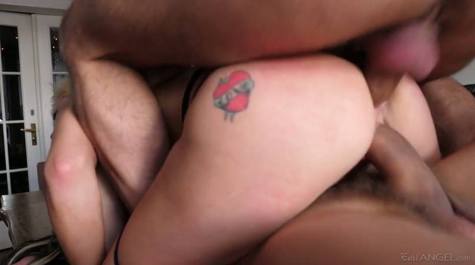 Two huge dicks drill anus and pussy of lustful tattooed chick Barbie Sins