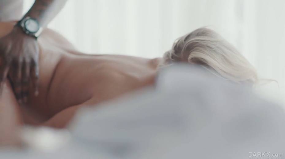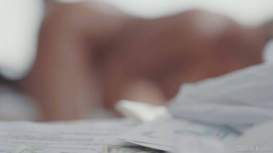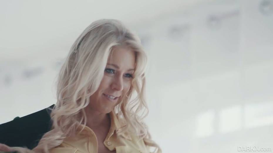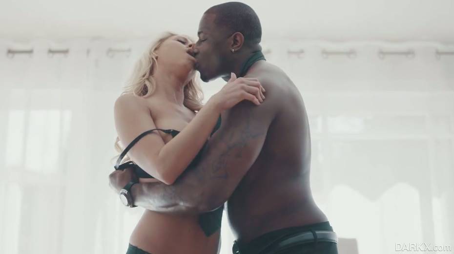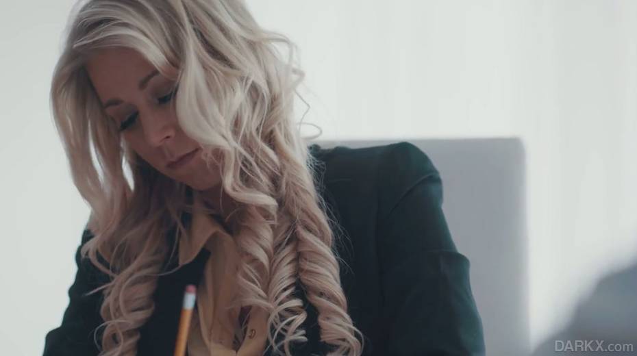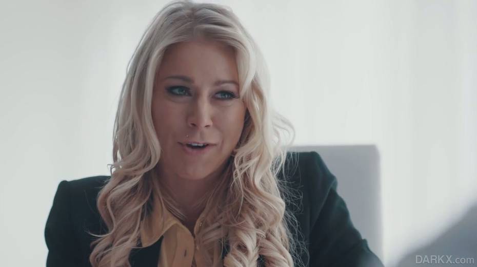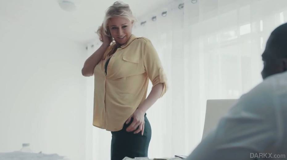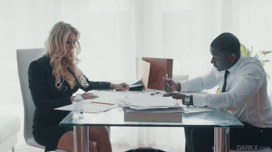 Mega busty secretary Katie Morgan gives a blowjob and goes black for the first time