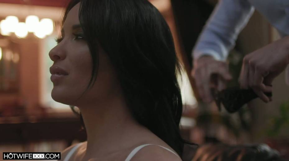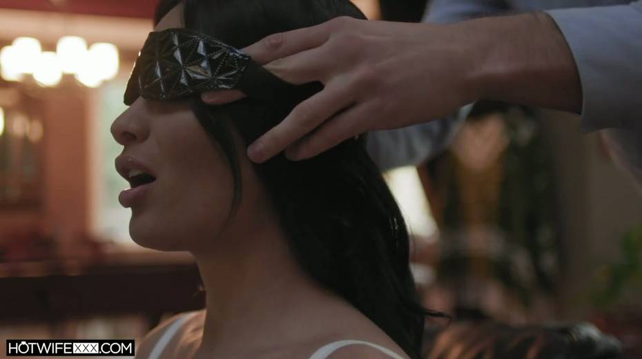 French busty paramour Anissa Kate gives a good blind folded blowjob