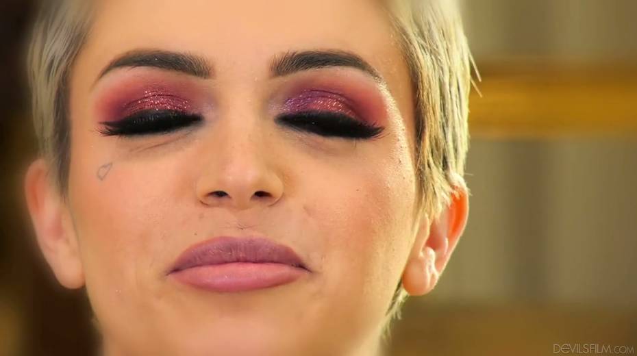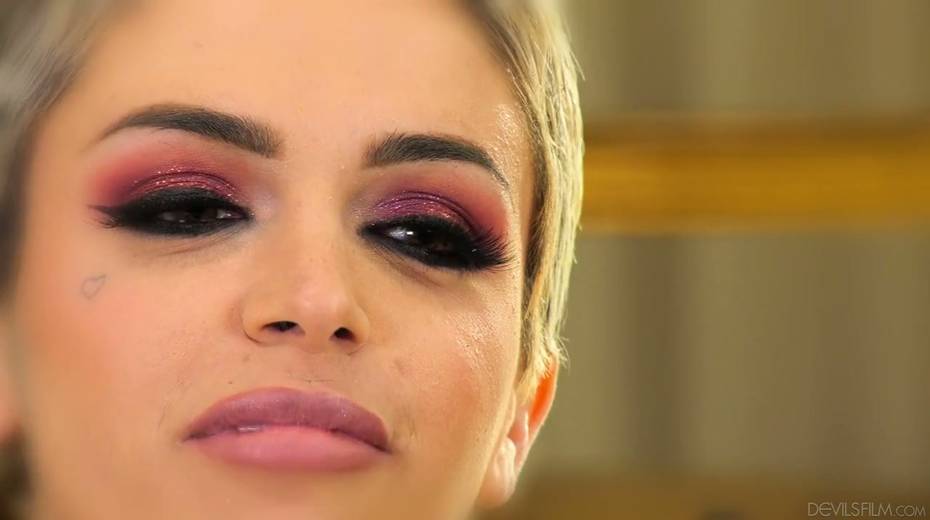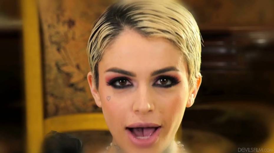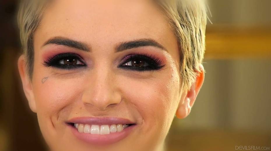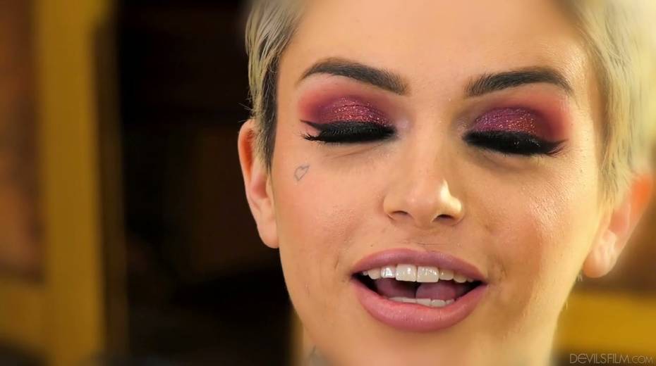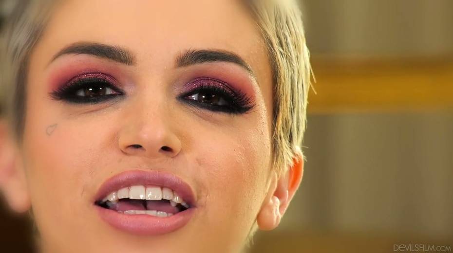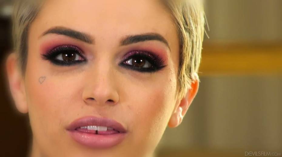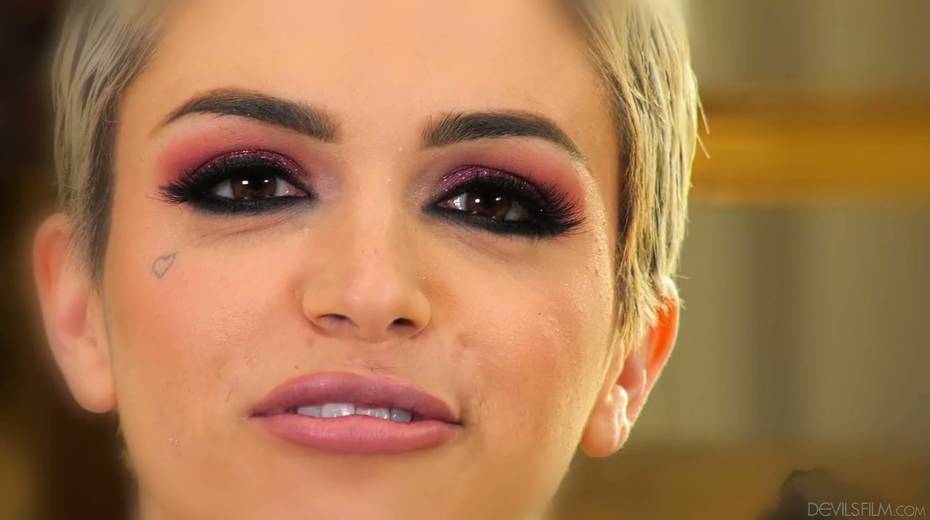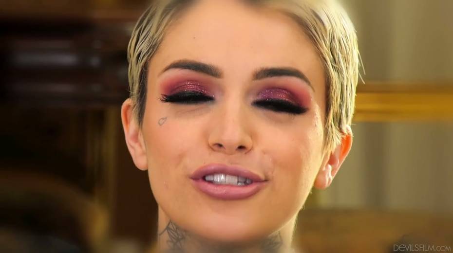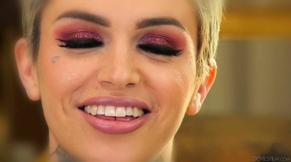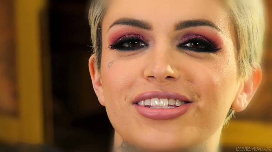 Sexy tattooed hottie Leigh Raven gives interview before shooting