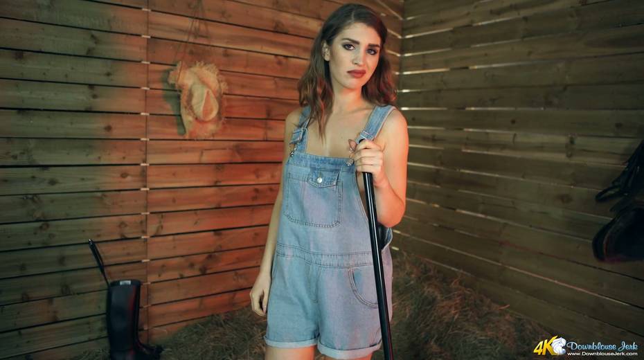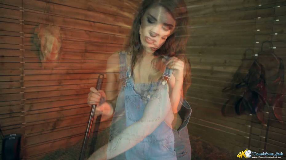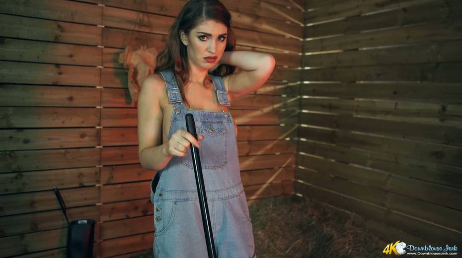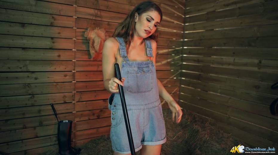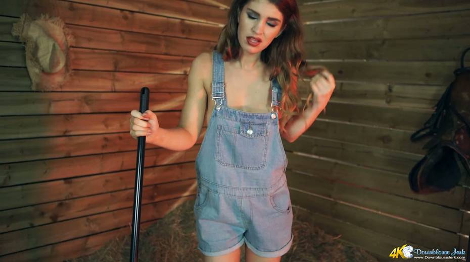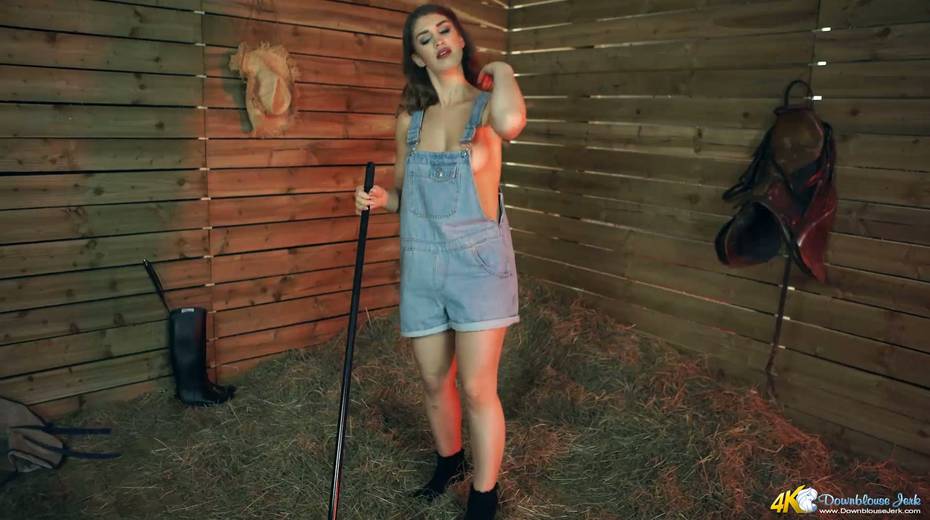 Nude overalls chick Katie Louise shows her yummy tits with perky nipples
