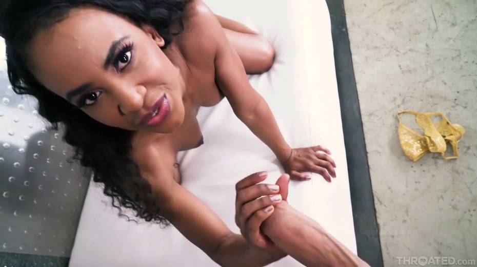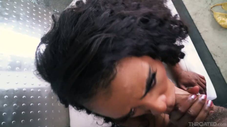 Black hottie Demi Sutra gives the best ever blowjob to one white fellow