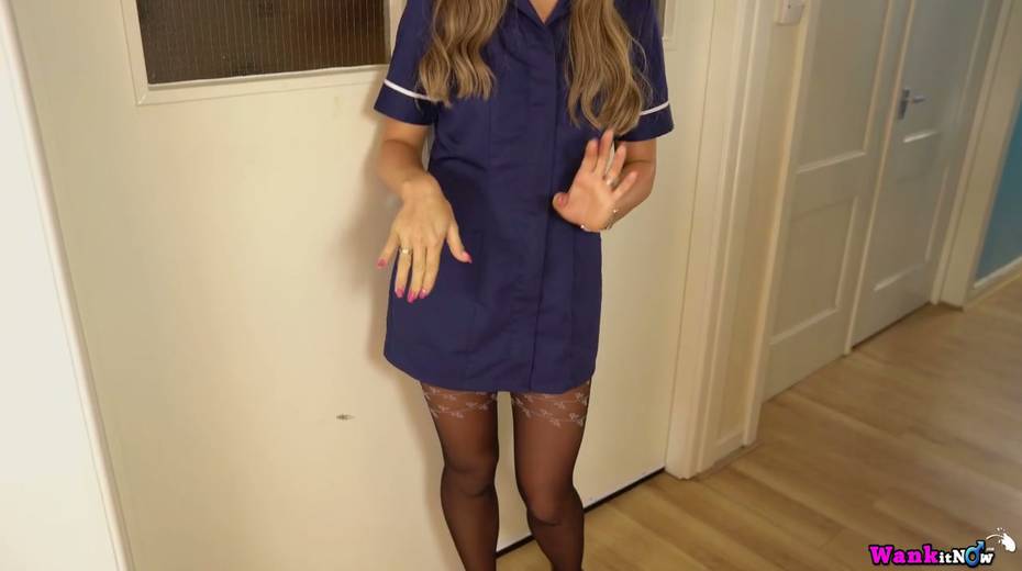 Slutty chick in uniform and stockings Natalia Forrest shows off yummy pussy and tits