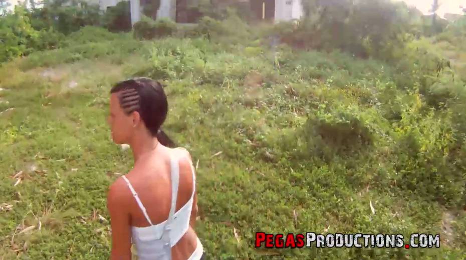 Slutty Canadian chick with slender body Amy Lee gets her pussy fucked outdoor
