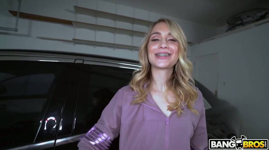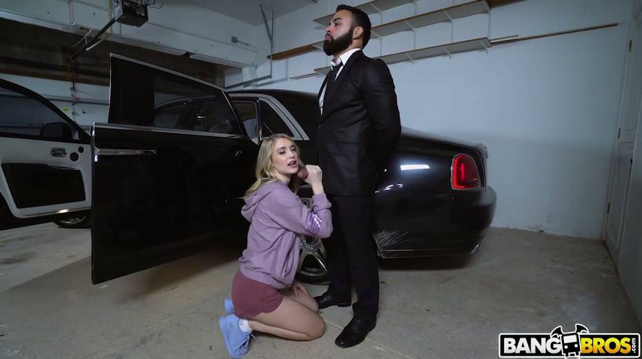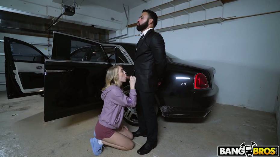 Blond babe Anastasia Knight gives a blowjob in the parking lot before crazy sex