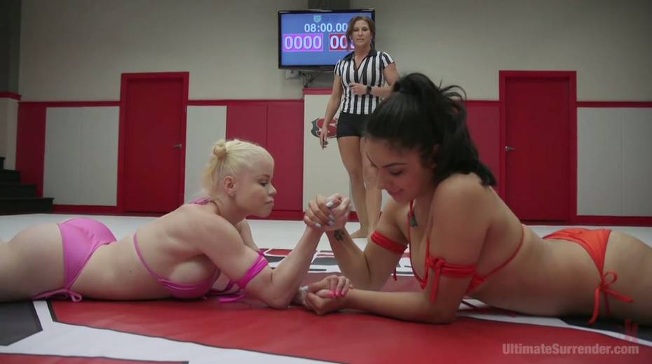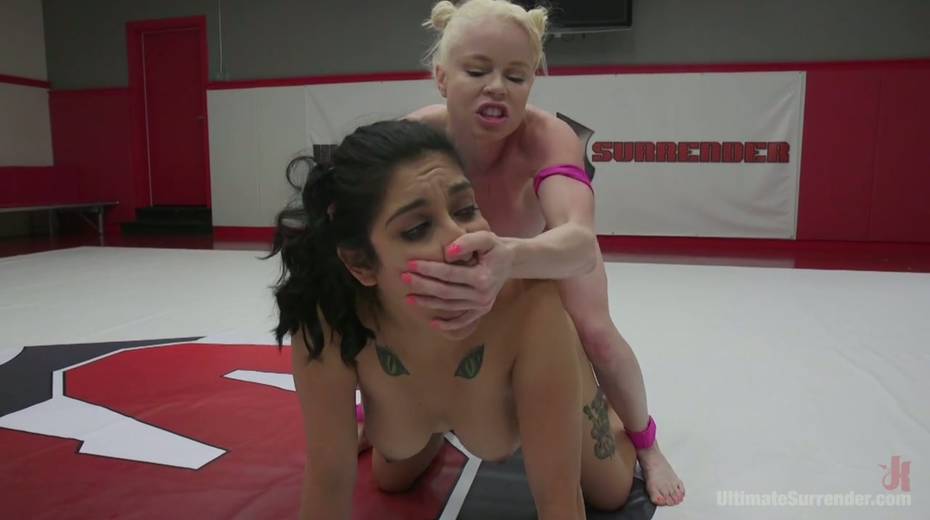 Horny cat-fight winner with strapon fucks pussy of naughty brunet Adley Rose