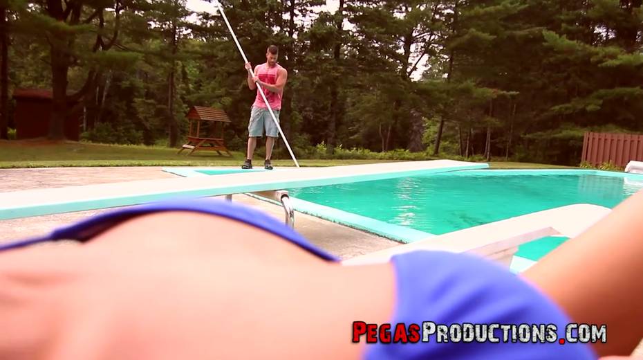 Juggy and leggy bitch Amy Lee is fucked by handsome guy by the poolside
