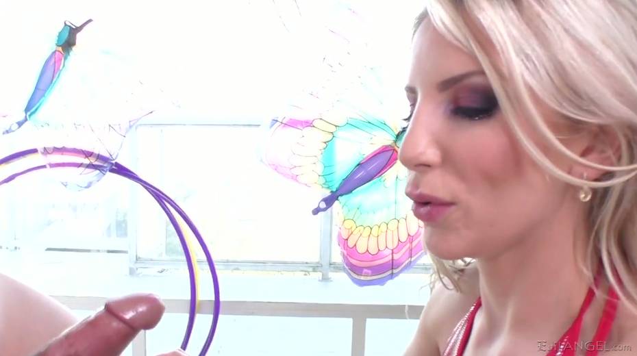 Eye catching blonde Ashley Fires is having crazy sex fun with brunette shemale