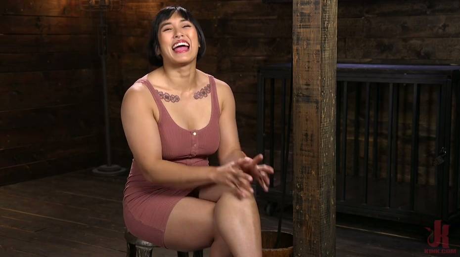 Tied up chubby model Mia Little gets her pussy punished in the dark basement