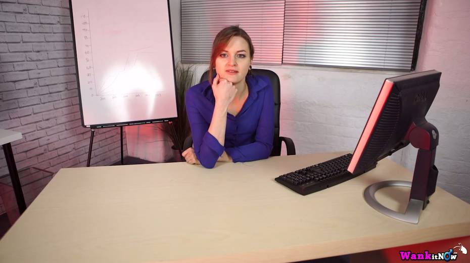 Sex-hungry secretary April O tries to satisfy herself right on the table