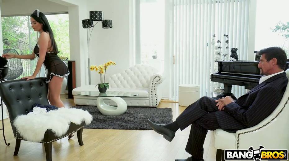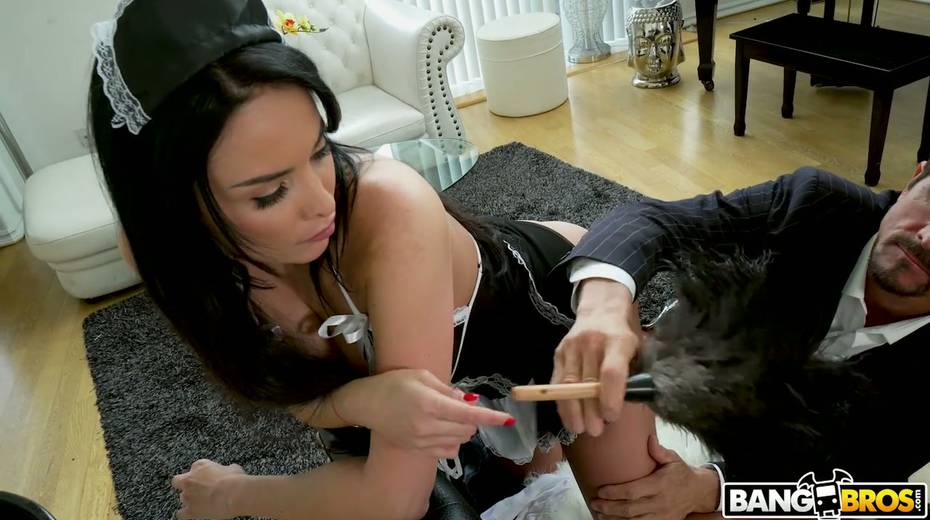 Lewd maid in sexy uniform Anissa Kate gives a deepthroat blowjob and gets her anus fucked