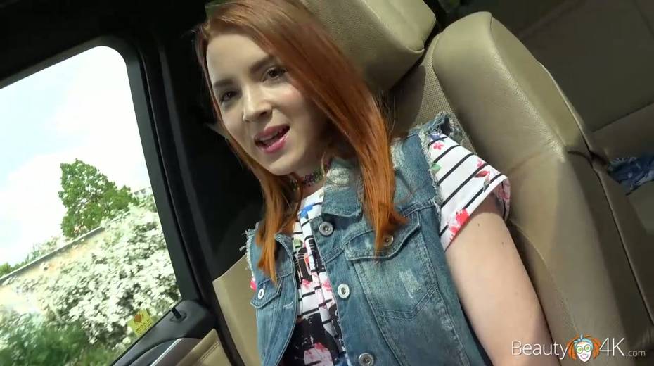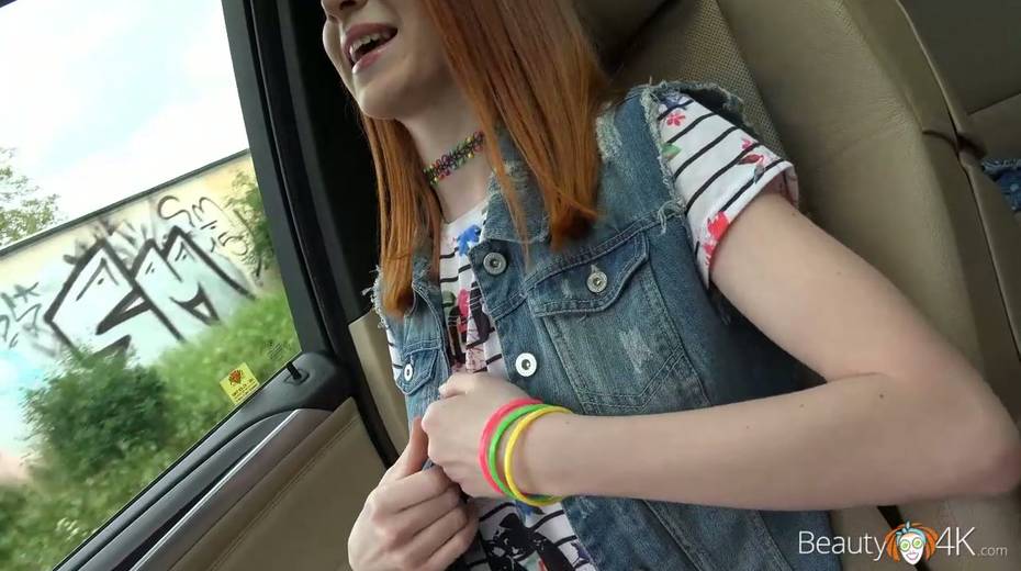 Lovely ginger teen Brianna gives a blowjob in the car and gets laid indoor