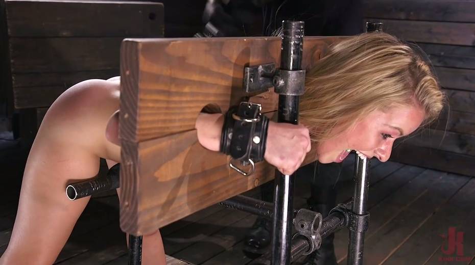 Restrained babe Lilly Lit squirts all over the place in the dark BDSM room