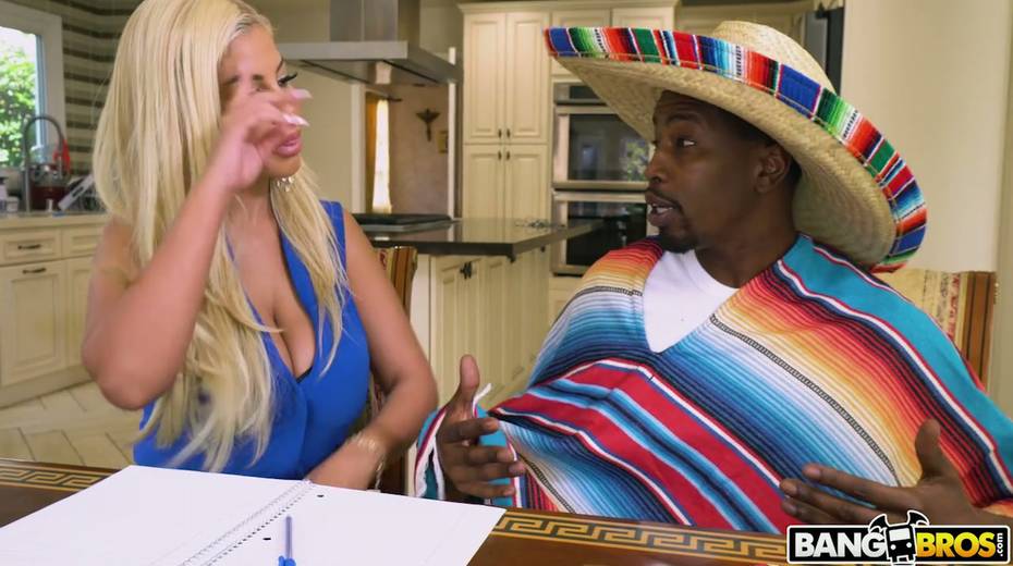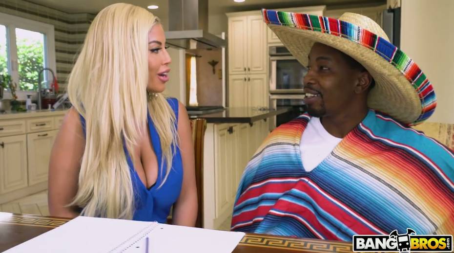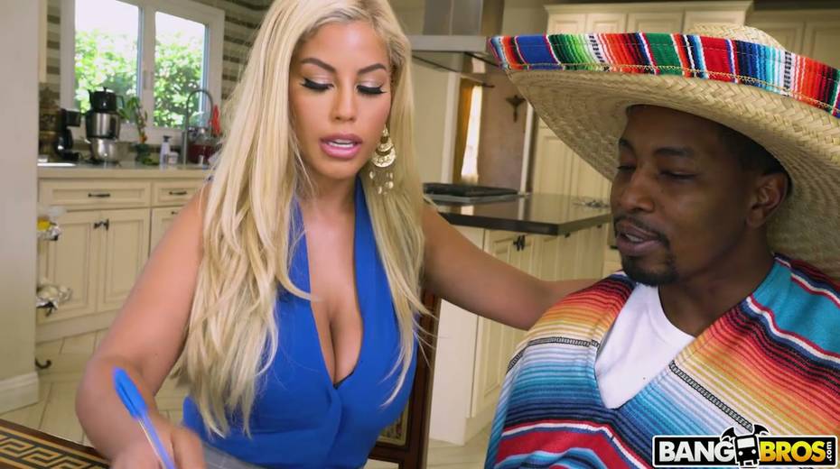 Man eating blonde Bridgette B sucks big black dick and gets her muff blacked