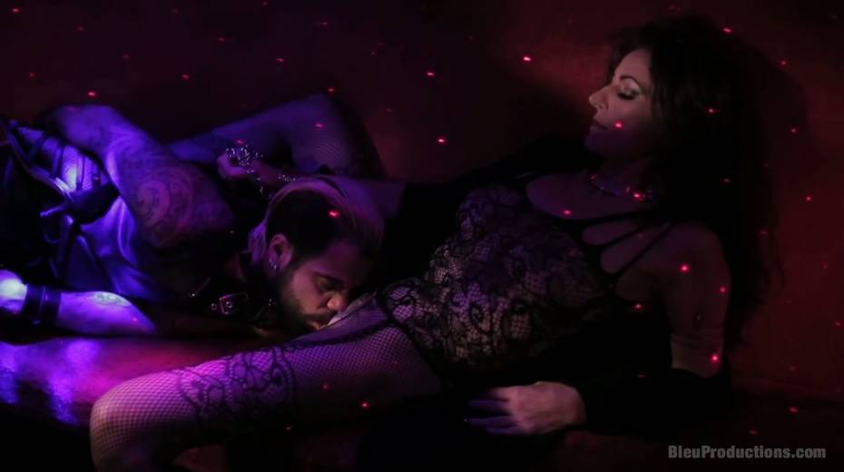 Strict mistress in latex allows submissive to lick her insatiable wet pussy