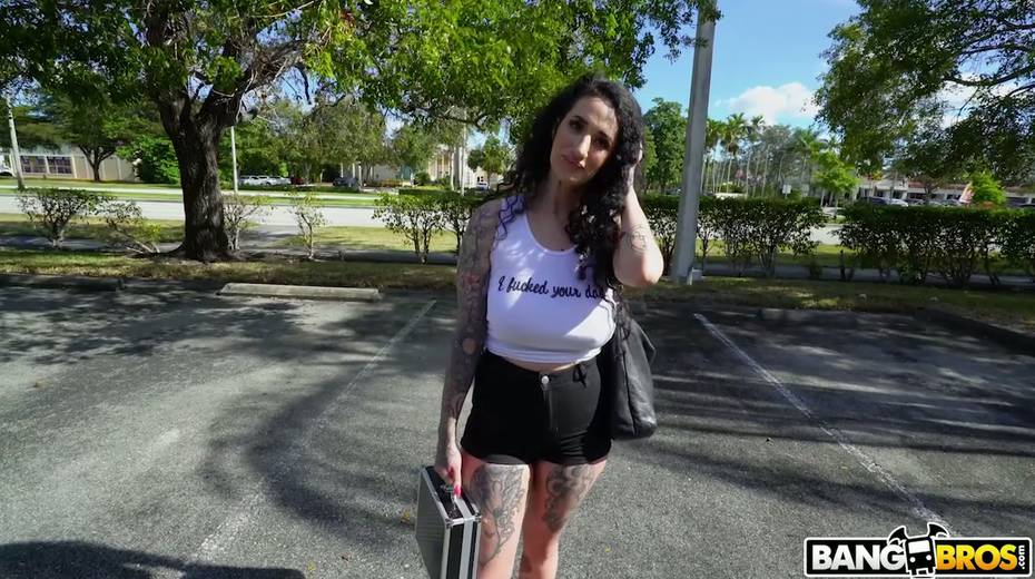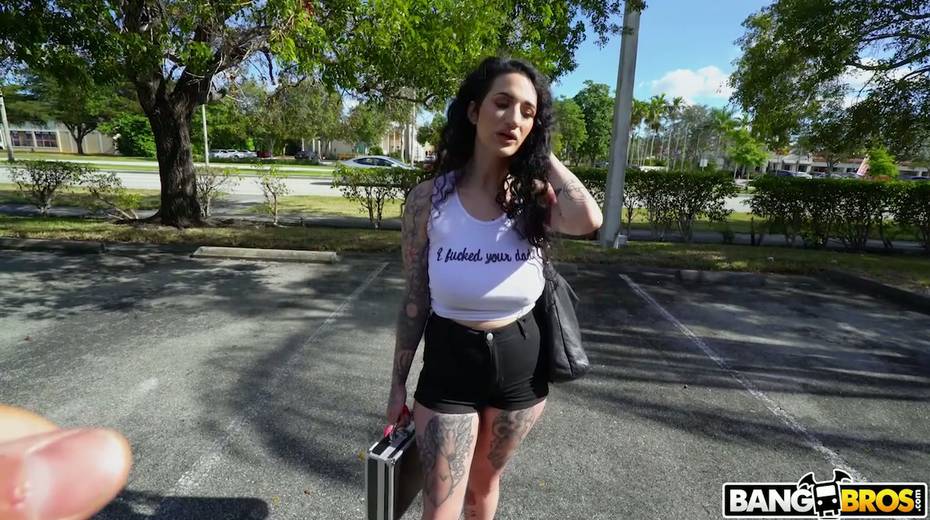 Bitch with tattooed back Arabelle Raphael is fucked anally after steamy blowjob and titjob