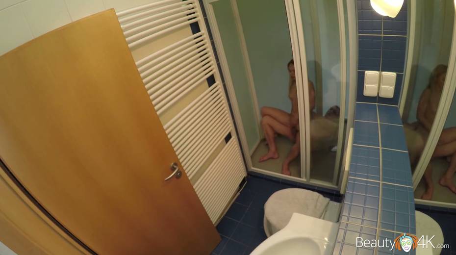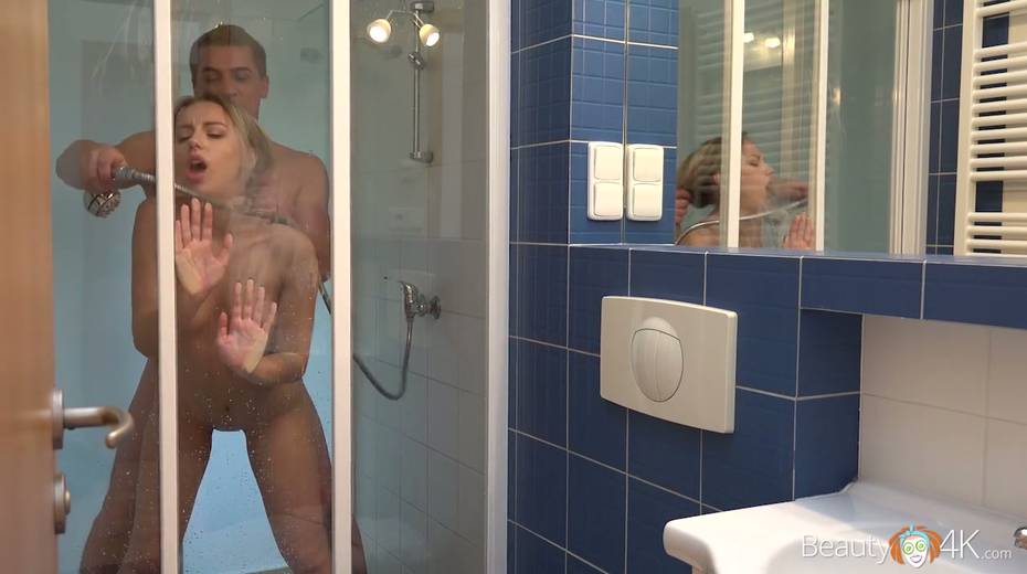 Slim blonde with small tits Kira Thorn gets her pussy nailed in the bathroom