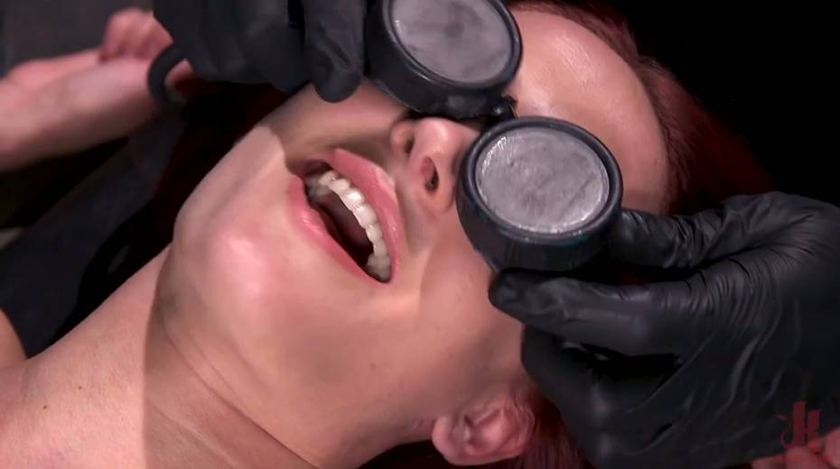 Red haired model Andi Rye is crucified and finger fucked by one kinky pervert
