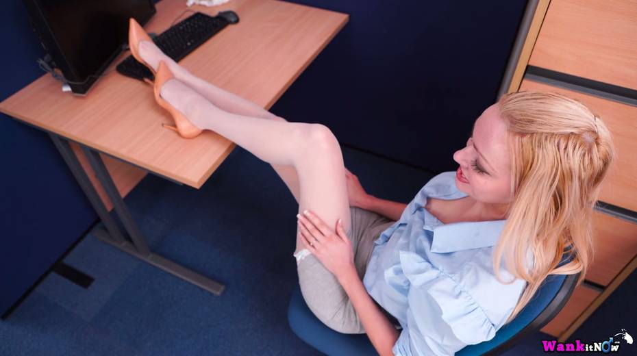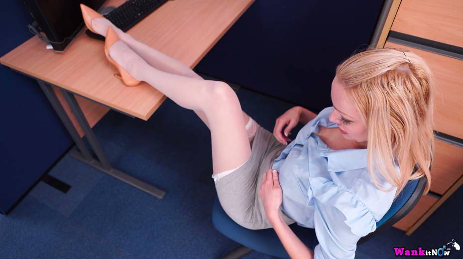 Hot POV scene featuring naughty secretary Amber Jayne with jizzed boobs