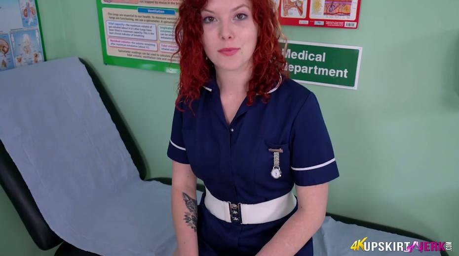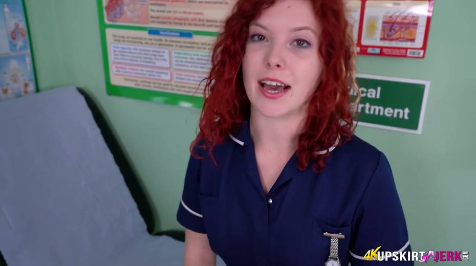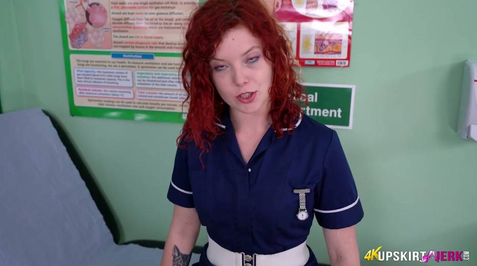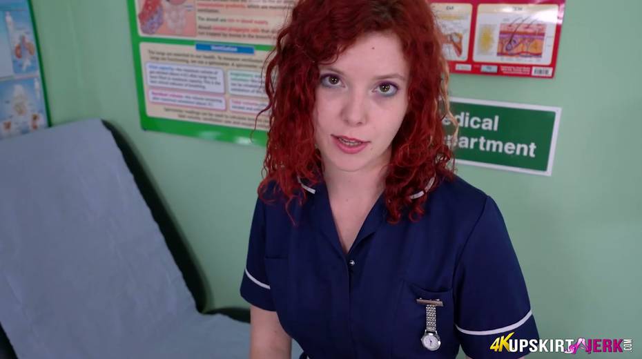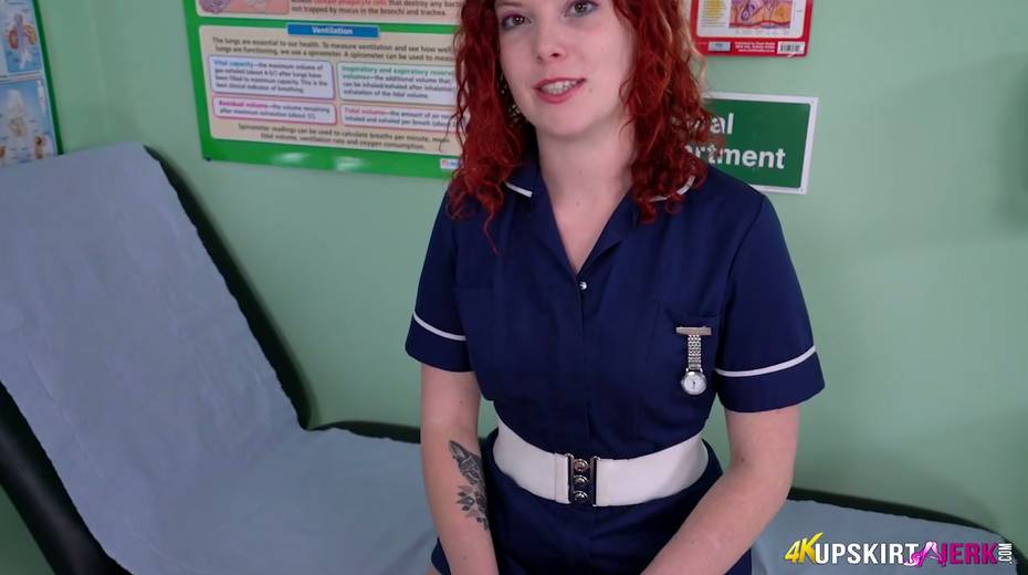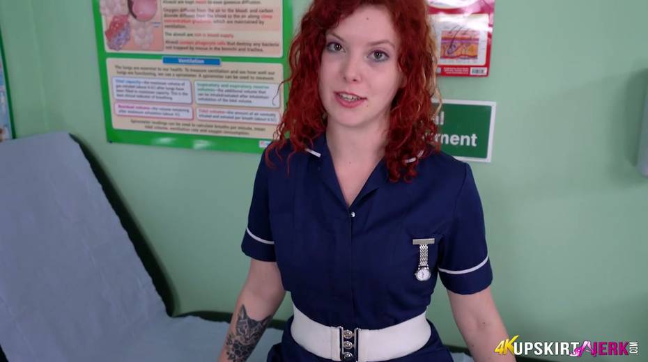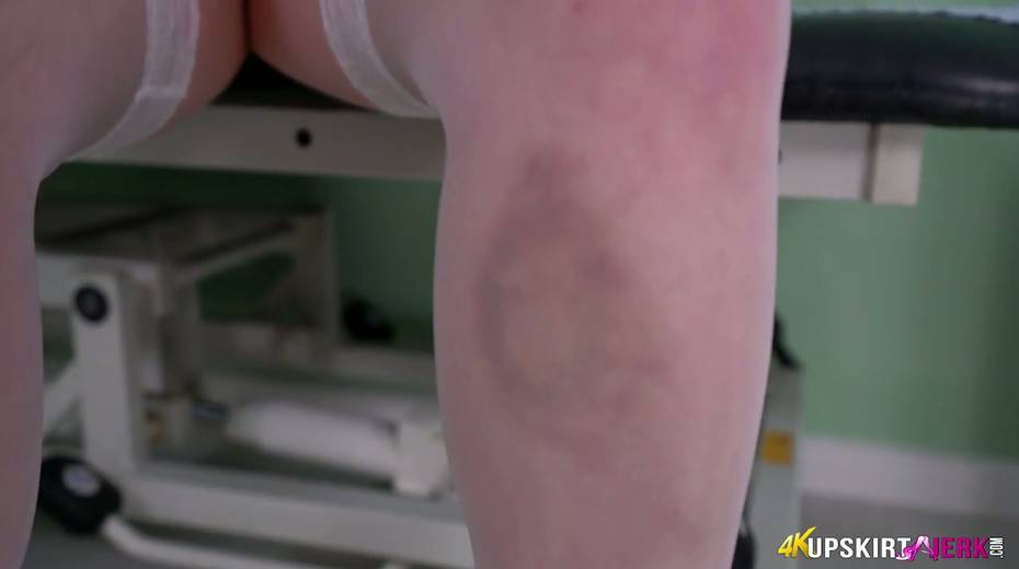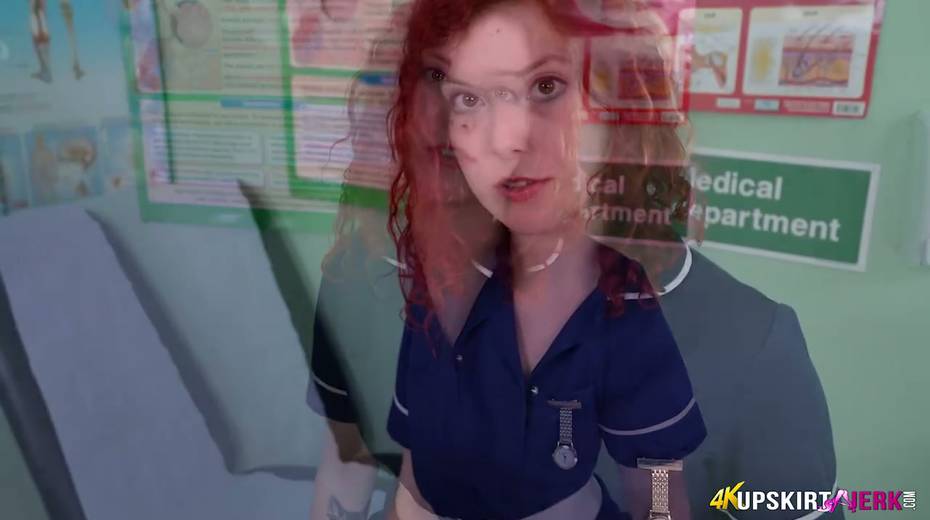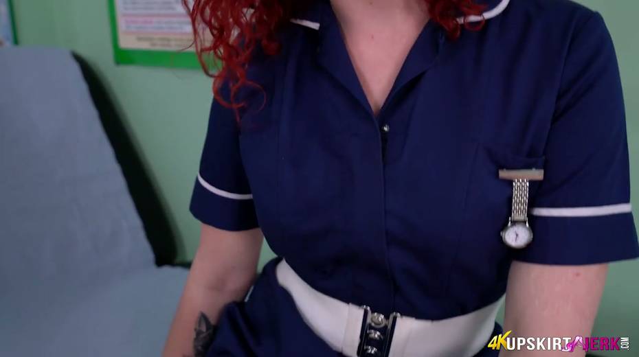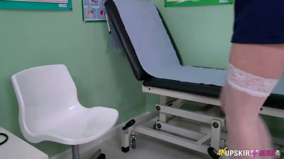 Slutty nurse in stockings takes off her panties and shows pussy doggy style