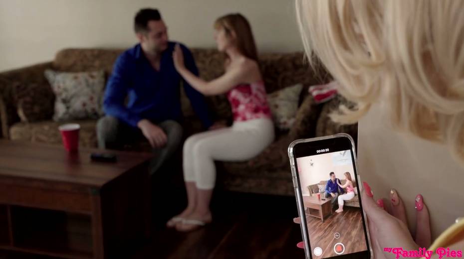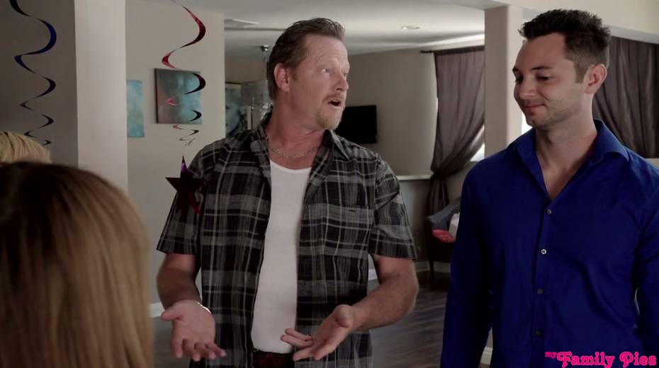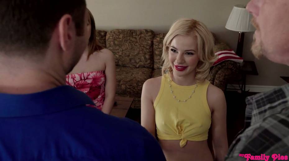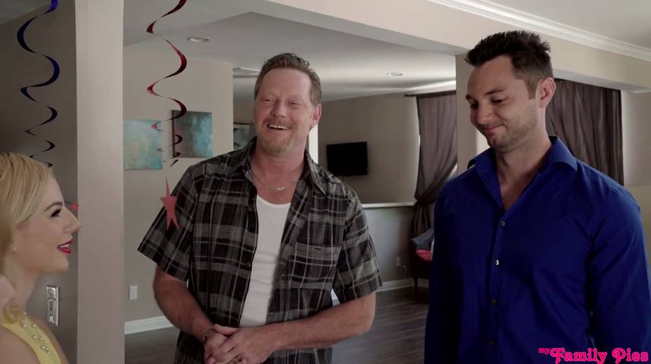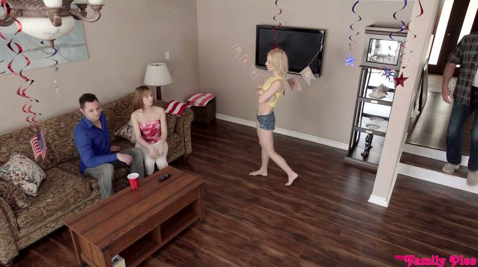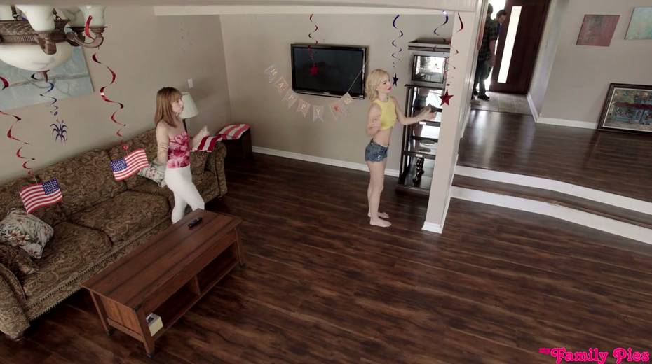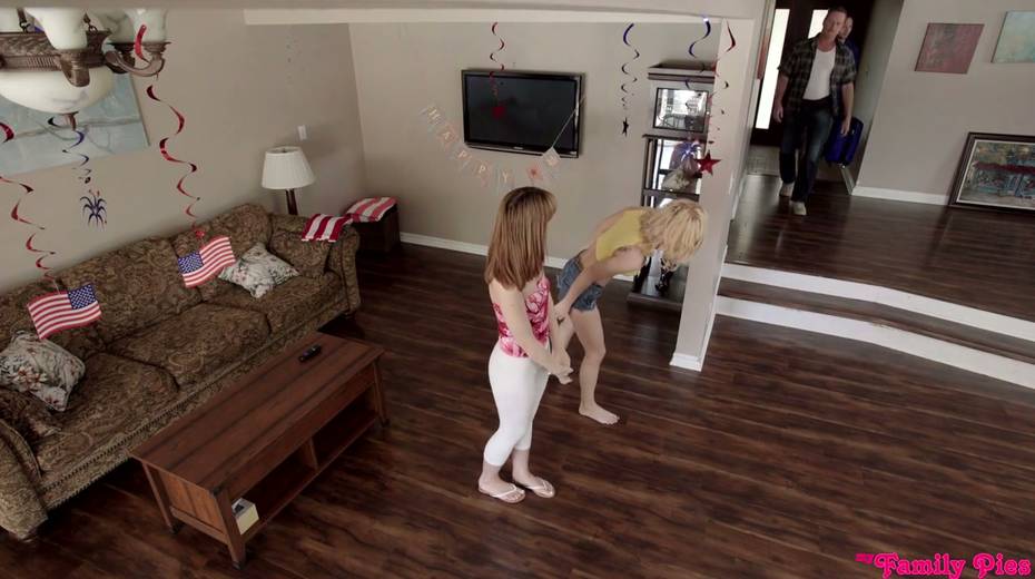 One dude fucks slutty stepsister Daphne Dare and her beautiful girlfriend