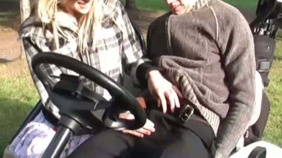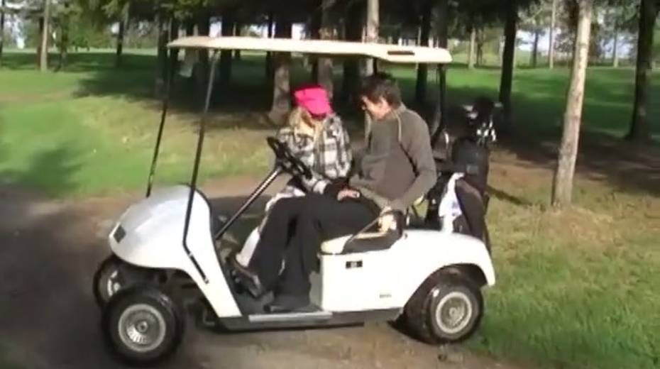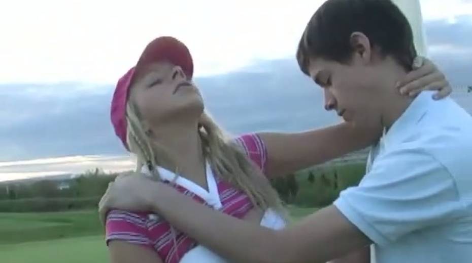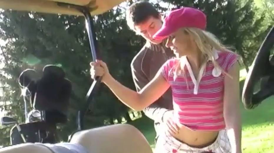 Captivating teen Candy Kiss gets her pussy licked and fucked on the golf course