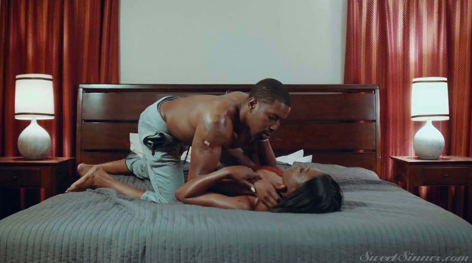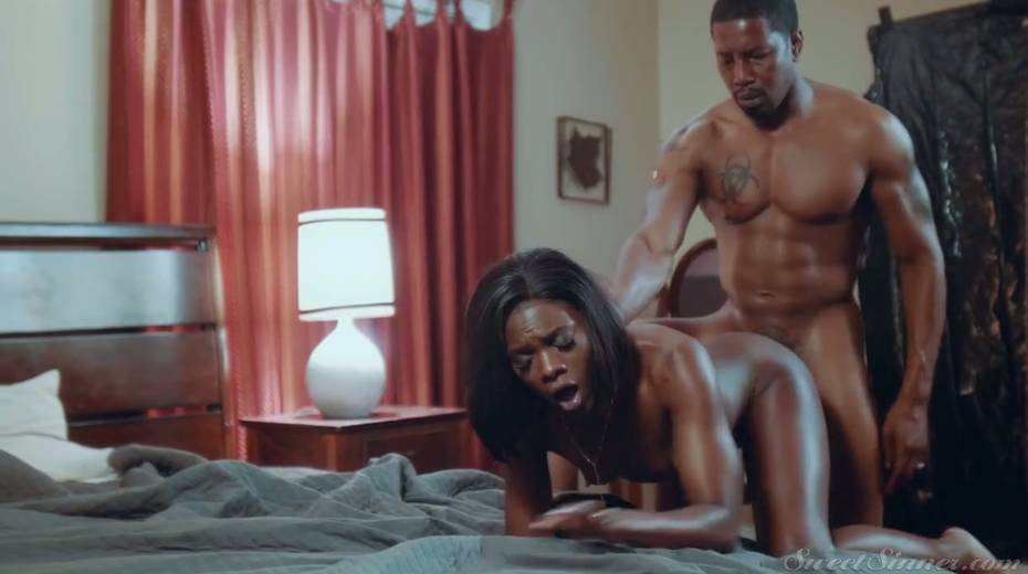 Black chick Ana Foxxx swallows bug black cock and gets her cunt stretched
