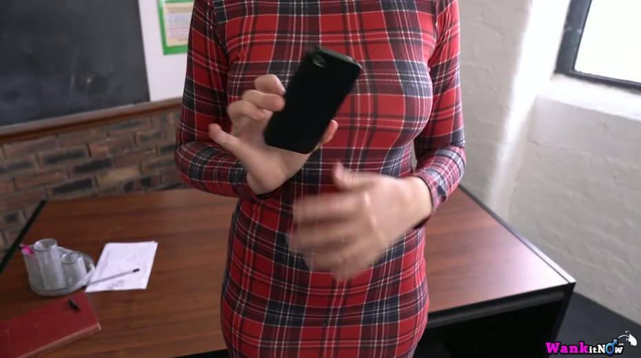 Sexy busty brunette Charlie Rose shows striptease ob the teacher's table