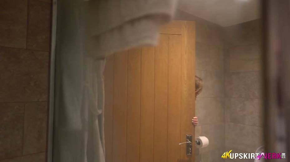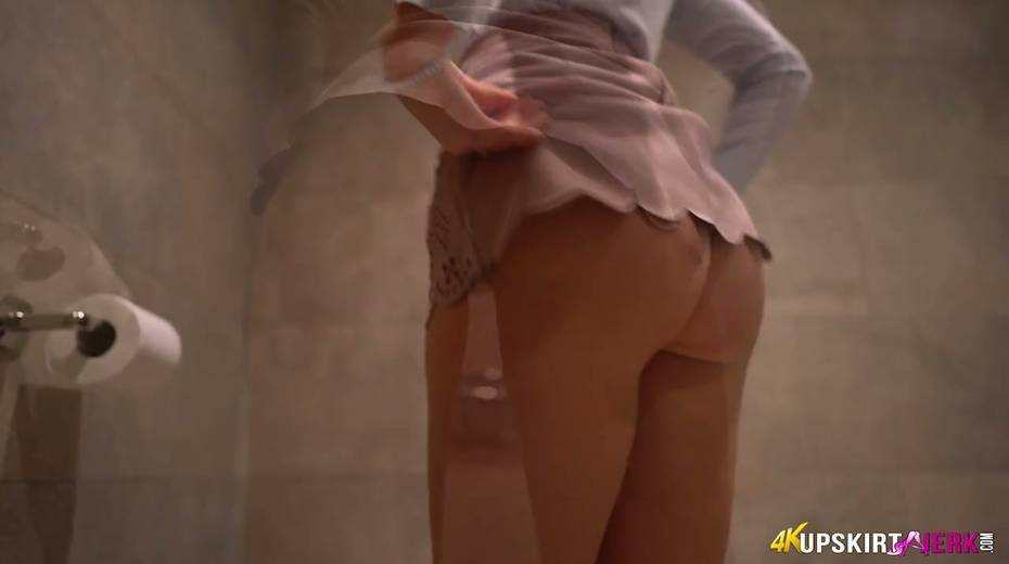 Lovely babe with quite juicy big boobies loves petting herself in the WC