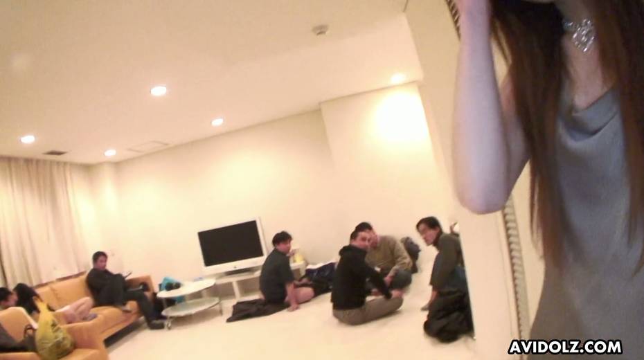 Cum hungry Asian nympho Aya Sugiura stands on knees as she wanna suck dicks