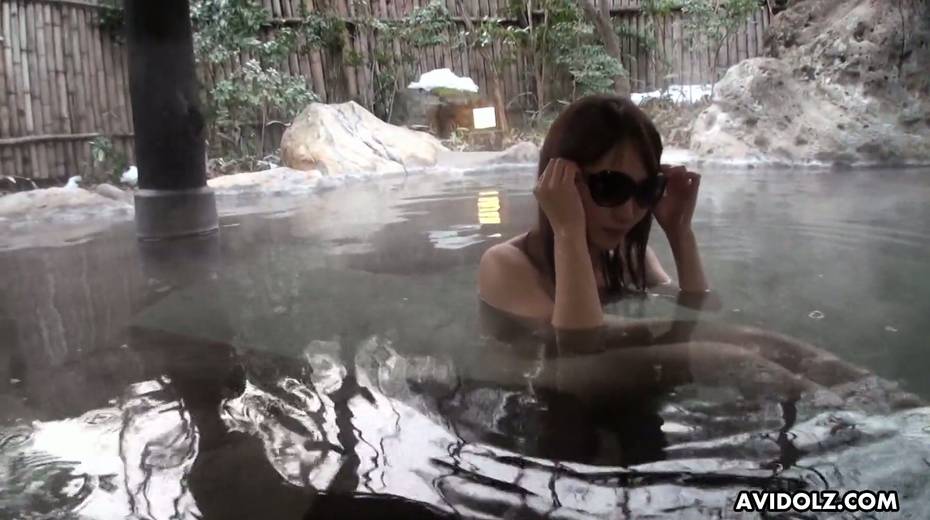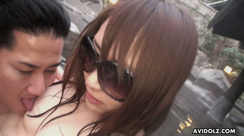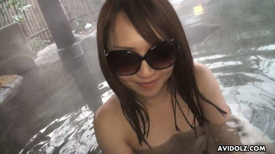 Kinky pale Japanese nympho in sunglasses Akiko Kurokawa is fucked well in hot springs