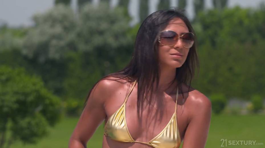 Tanned bitch in sunglasses Cassie Del Isla rides dick to be anal fucked outdoors