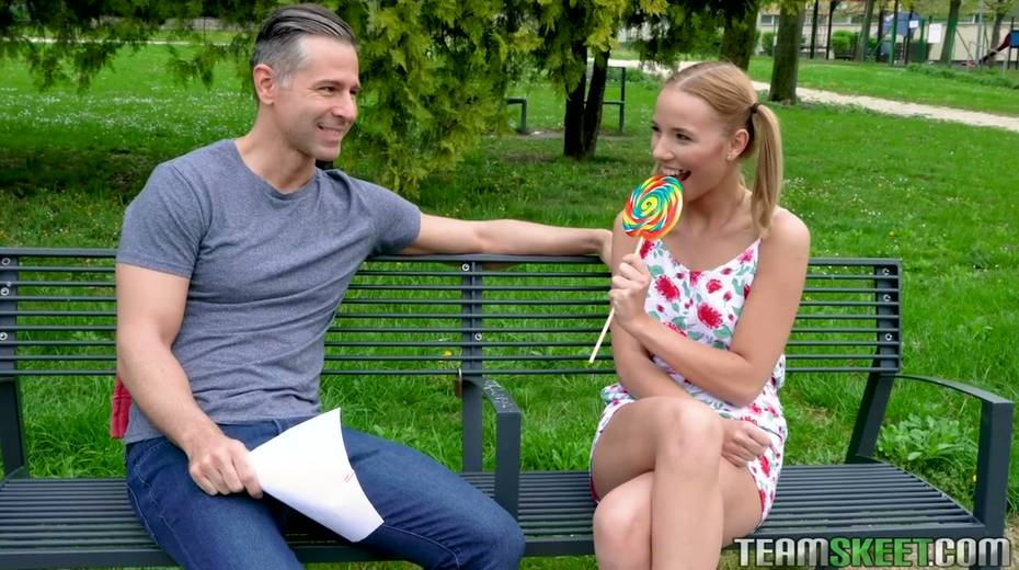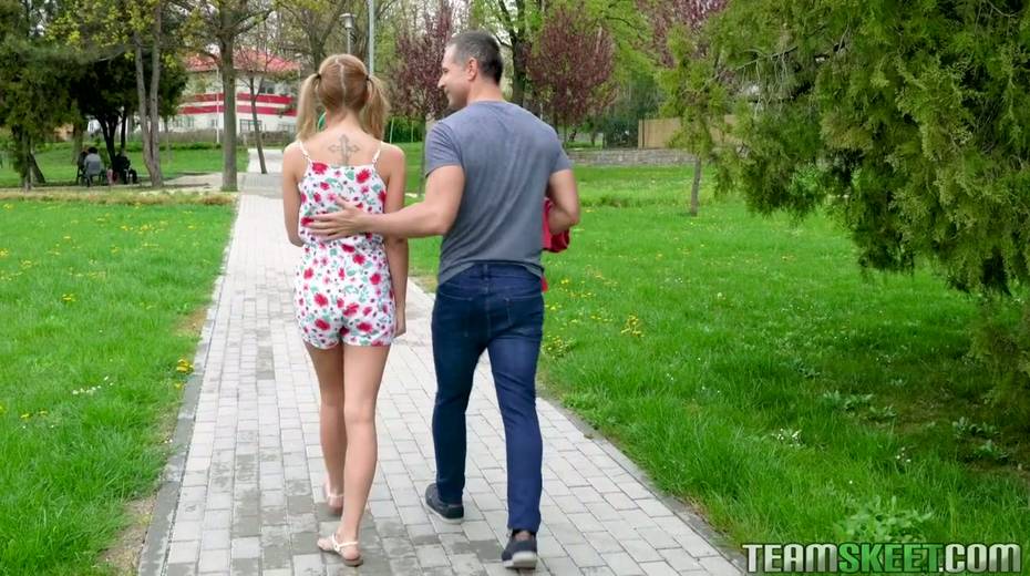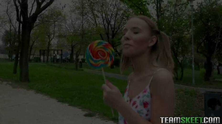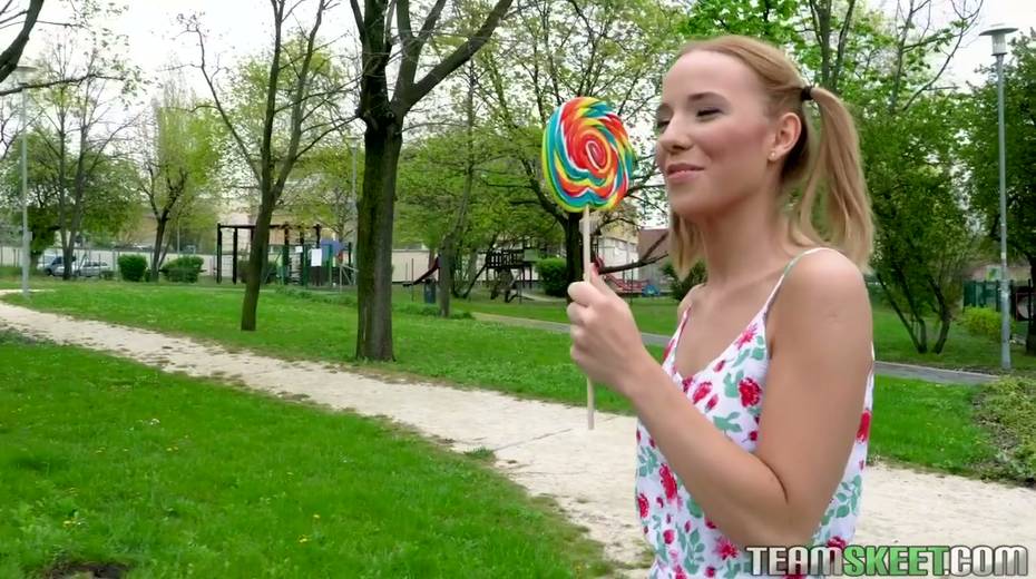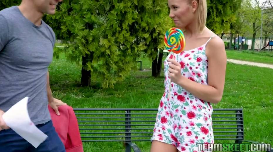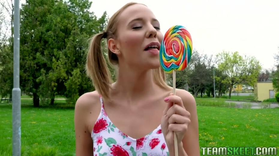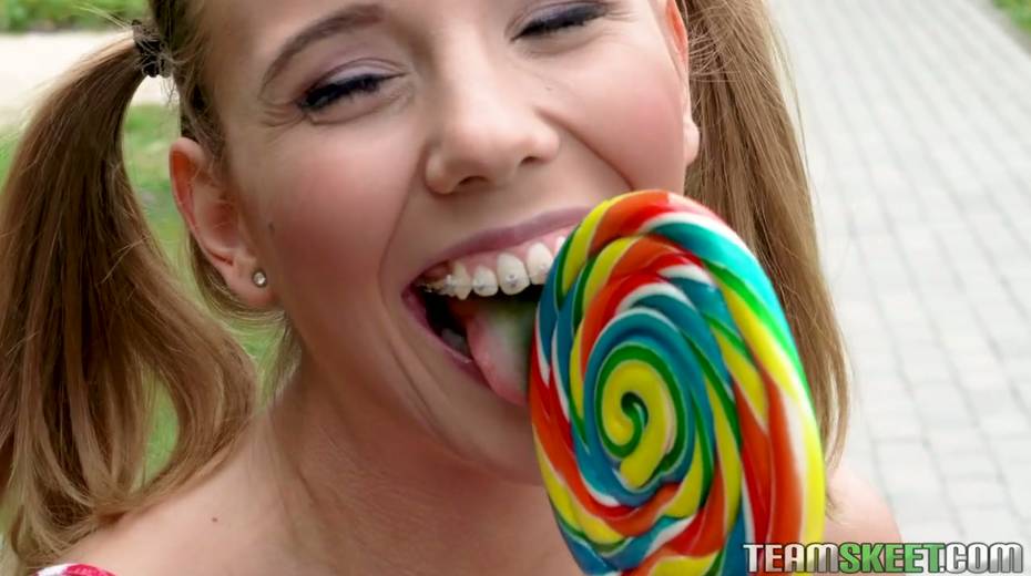 Pigtailed teen with braces Poppy Pleasure is having quickie with one stranger guy