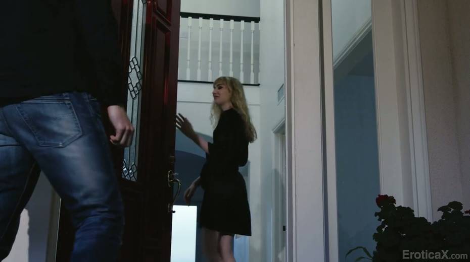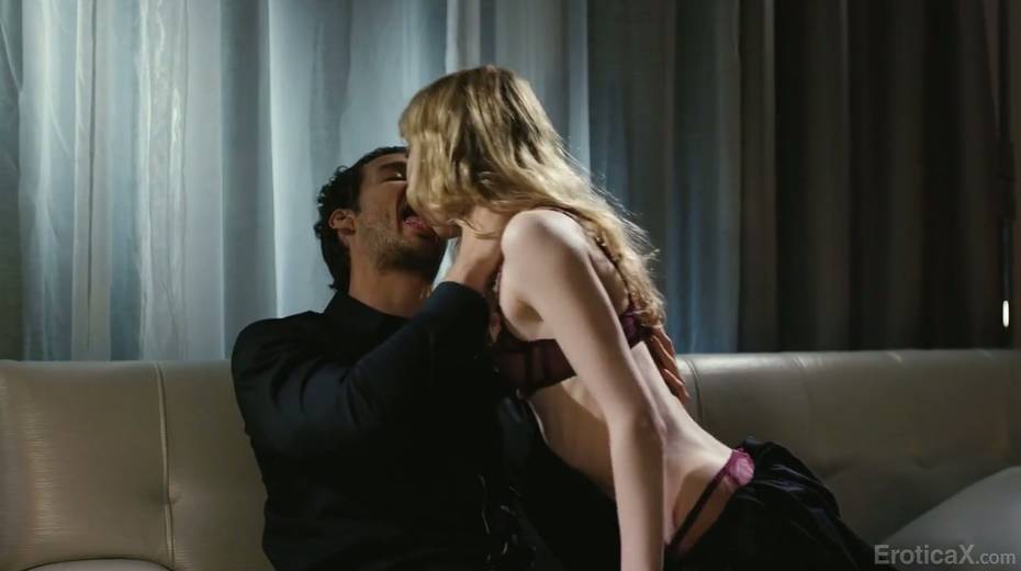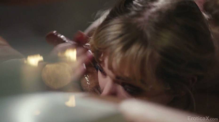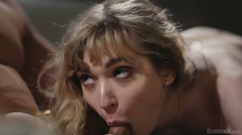Seductive blonde Mackenzie Moss worships big dick and balls of her new lover
