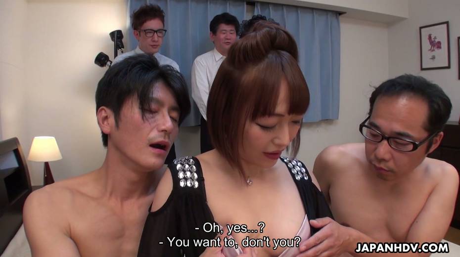 Asian porn model with juicy boobies Yui Ayana tries to satisfy several horny dudes