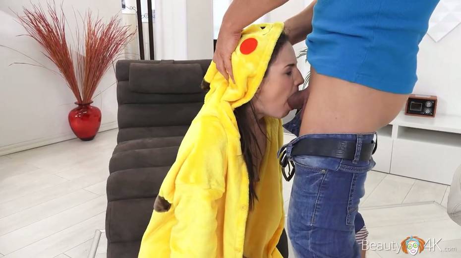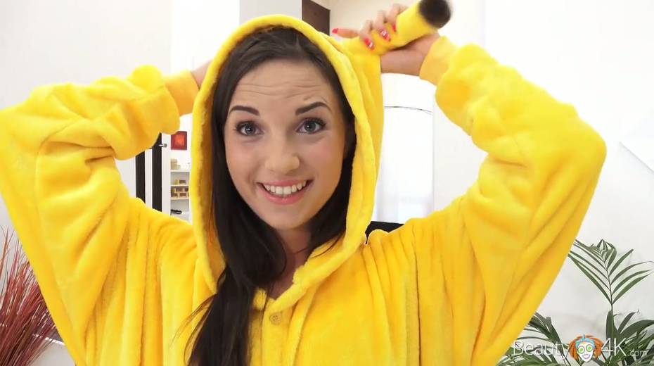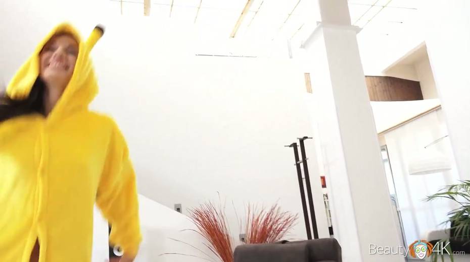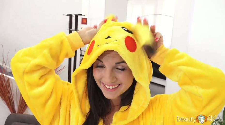 Lovely teen wearing pikachu pijama Kristy Black enjoys having crazy sex fun with her boyfriend
