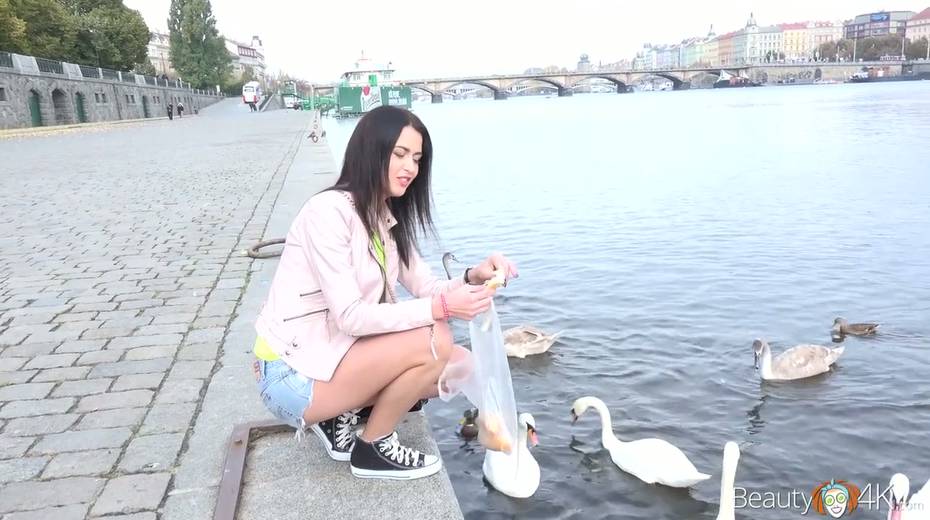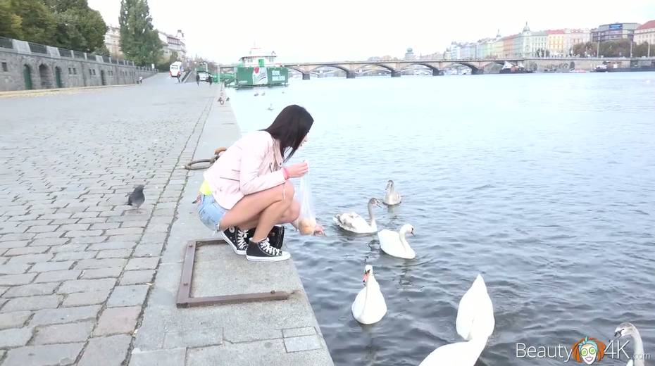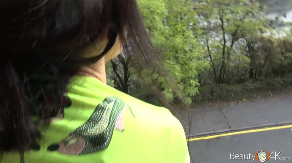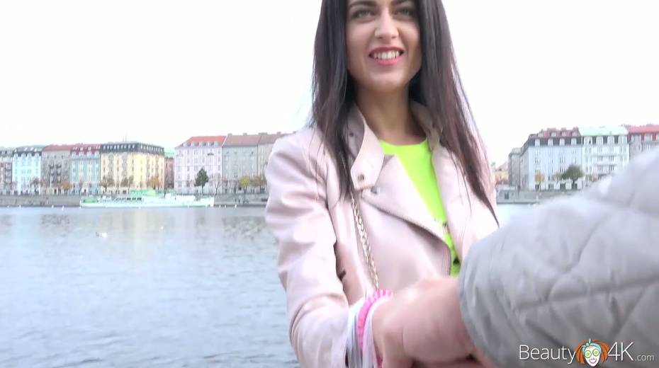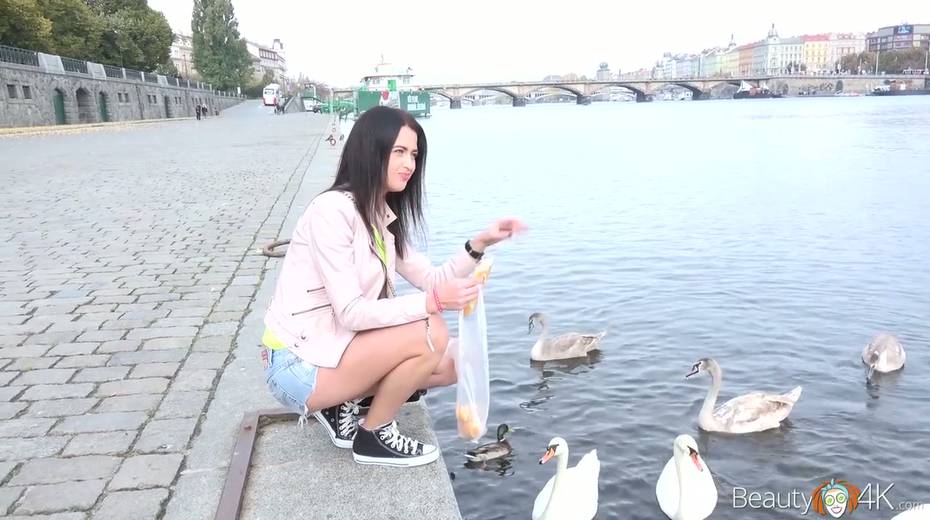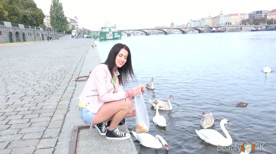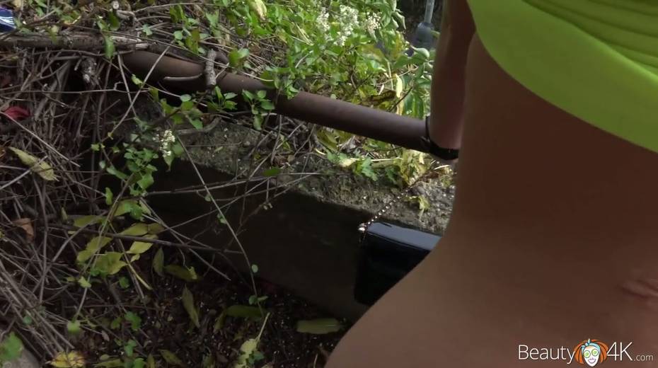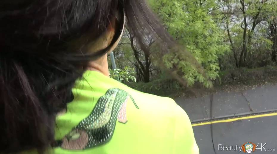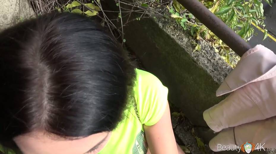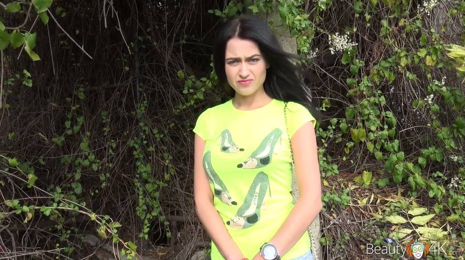 Timid brunette Nikky Perry gives a blowjob outdoor and gets laid indoor