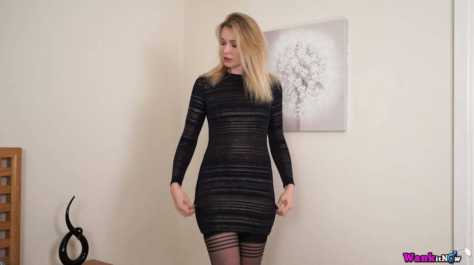 Tall housewife in stockings Hannah Z shows off her pussy and yummy boobies