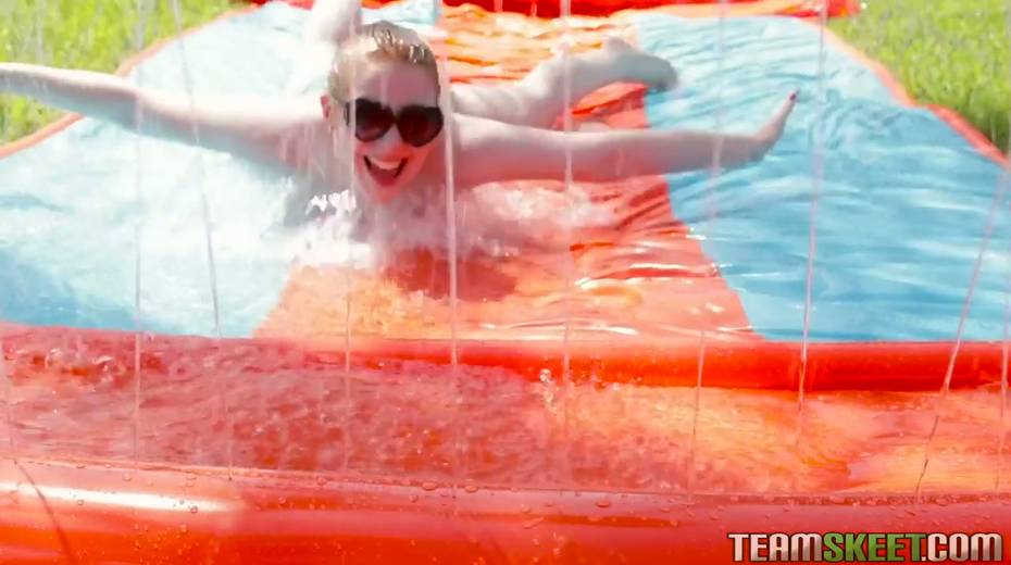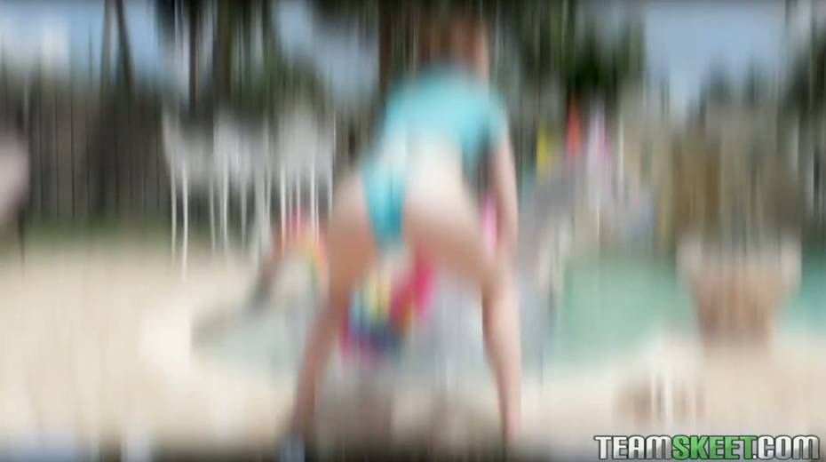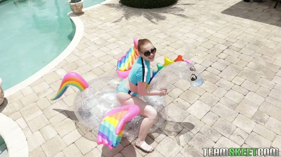 Slutty red head Amber Addis gives a blowjob and gets fucked hard by the poolside