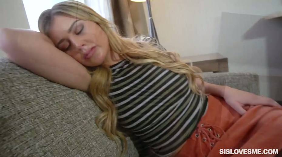 Dude touches boobies and pussy of sleeping stepsister and jerks off cock