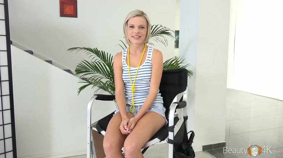 Cute blondie Eveline Dellai is sucking hard big dong before heavy pussy pounding