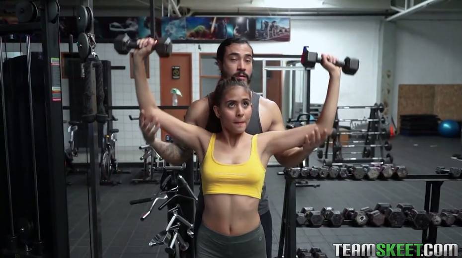 Fitness chick Evelyn Suarez is fucked hard by hot blooded tattooed coach