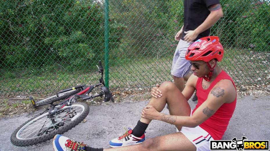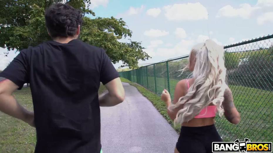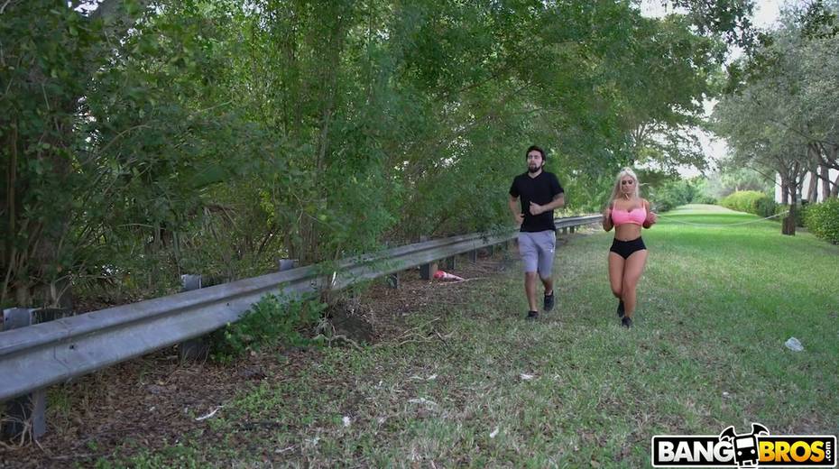 Jogging busty and bootyful chick Brandi Bae bangs black dude under husband's nose