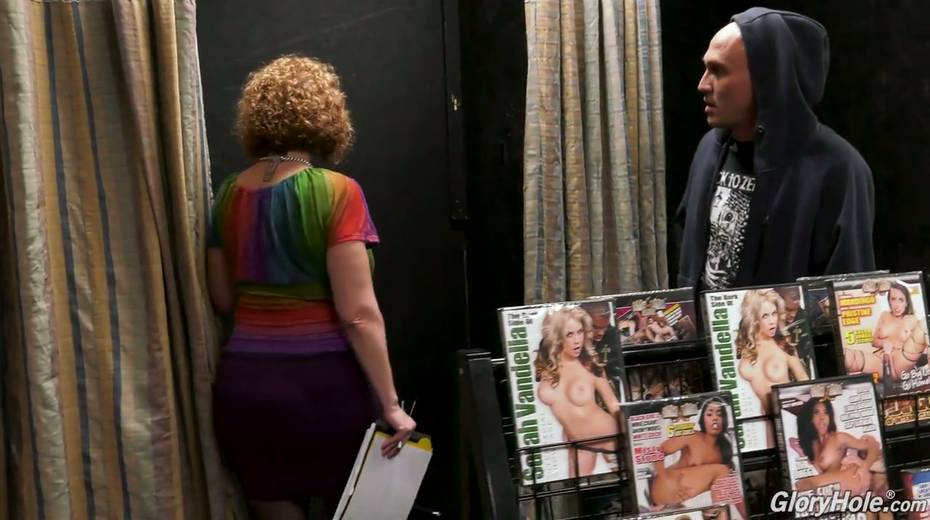 Chubby huge breasted Sara Jay is fucked right by glory hole anon stud