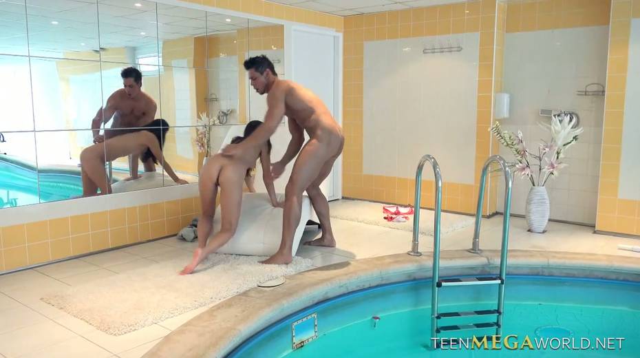 Quite leggy naked gal Shrima Malati blows and rides dick in the pool