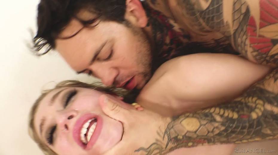 Brutal dude with tatts fucks pussy and deep throat of nasty chick Mackenzie Moss