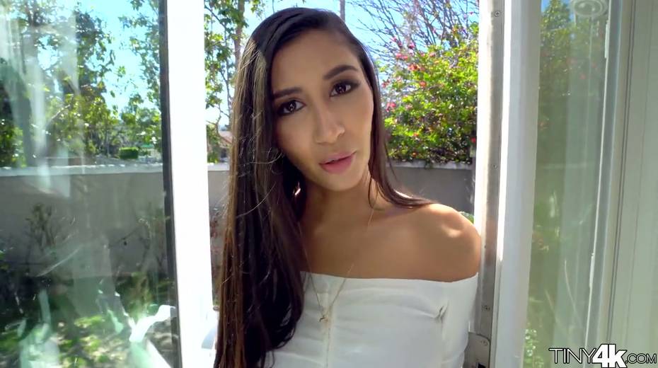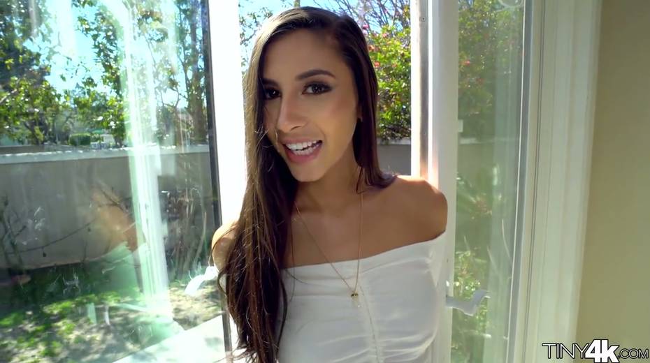 Tanned petite chick Gianna Dior swallows huge cock and gets her pussy stretched
