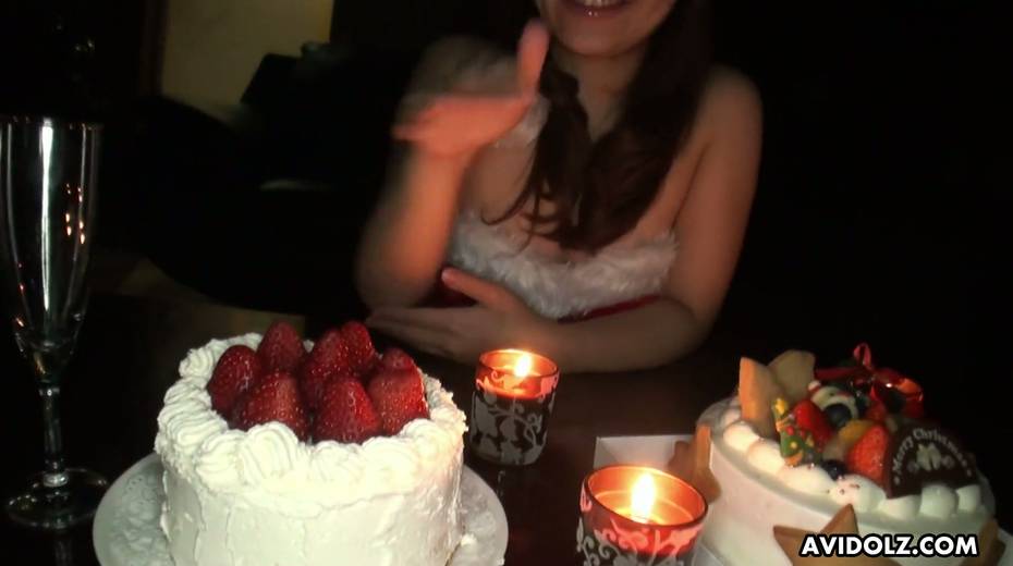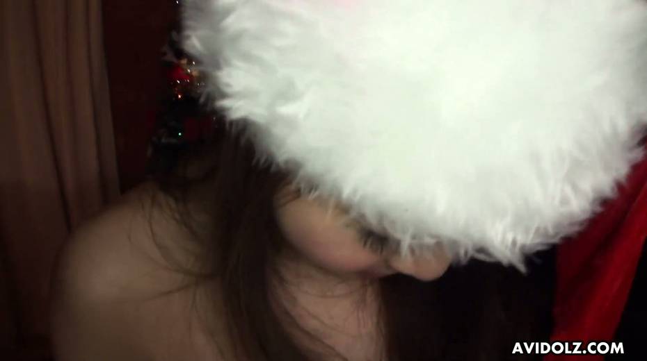 Japanese funny chick in Santa Clause outfit Minako Sawada gets facial