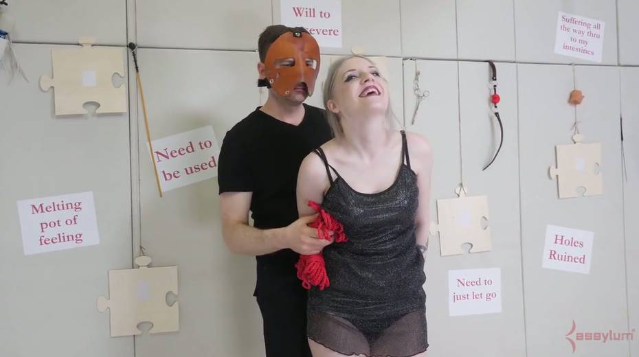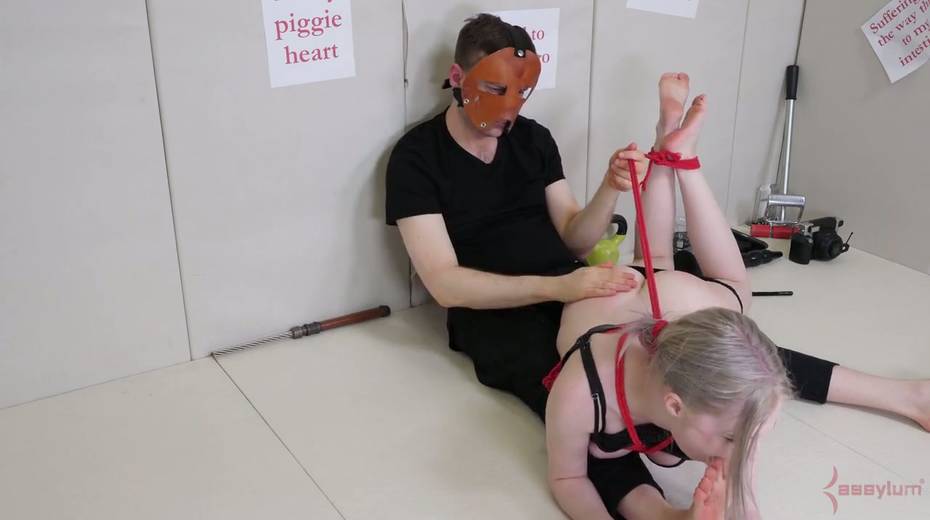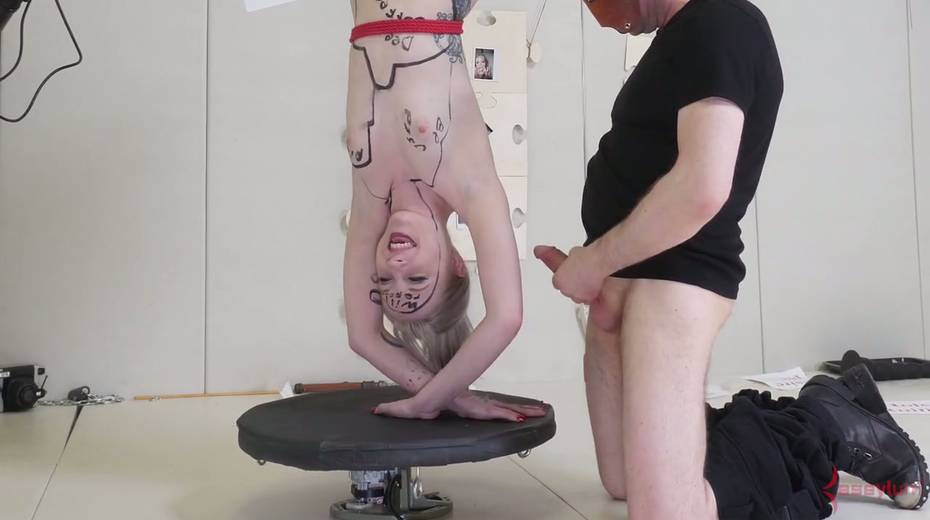 Dude fucks anus and deep throat of suspended upside down babe Violet October