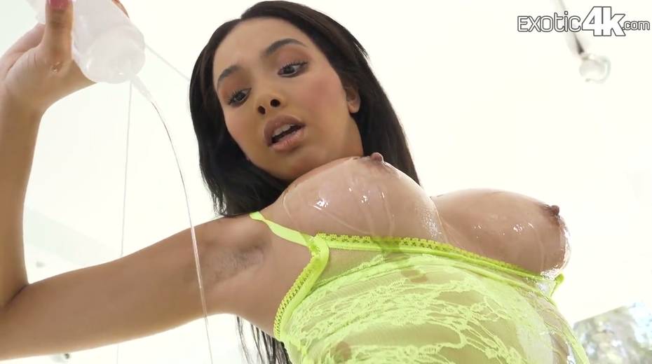 Mixed-race babe Aaliyah Hadid gives her head and gets her anus stretched
